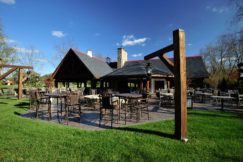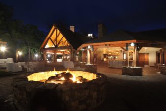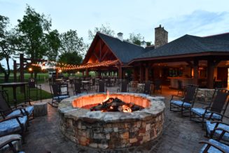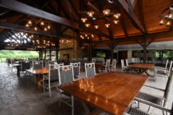 Other features of this beautiful space include a covered main dining area, double-sided fireplace, exhibition kitchen, open-air patio, and cozy fire pit. The Pavilion can be used for any type of event, primarily from late spring through late fall when the weather makes the outdoor experience especially nice. It can comfortably accommodate 175 seated dinner guests and expand to welcome even more guests when the adjacent grassy area by The Lodge is tented.